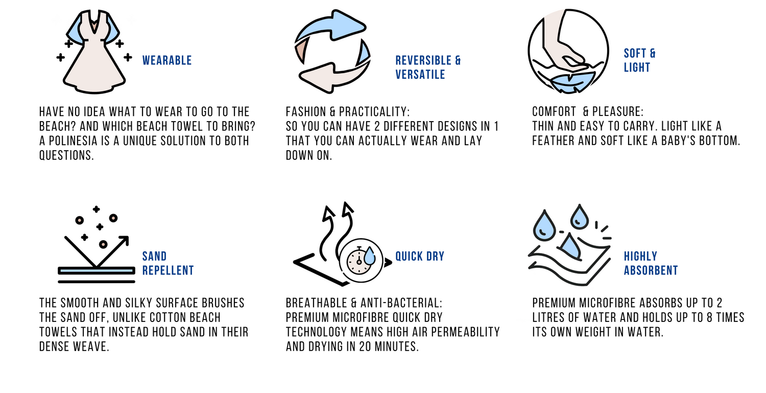 Sick of a simple quick dry? Polinesia is the first dress towel ever with a lot of advantages.